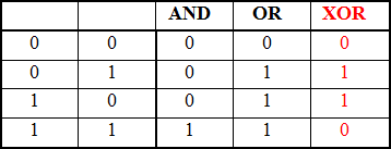 Простой но эффективный алгоритм, построенный на операции логического исключающего ИЛИ, в англоязычной терминологии XOR. Справа представлена таблица истинности, которая указывает, что операция дает 0 для одинаковых битов и 1 для разных. XOR является симметричным алгоритмом шифрования, а это значит, что не требуется иметь отдельные функции для шифрования и расшифровки. Применив ключ на шифротекст мы на выходе получим открытый текст.